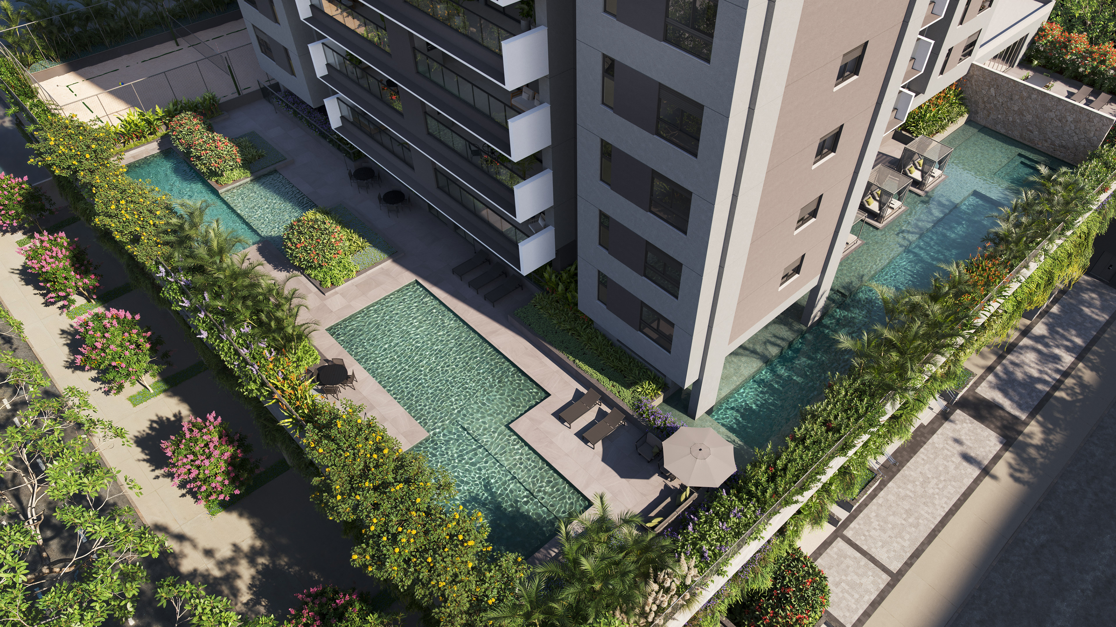 No Setor Bueno, um dos bairros mais consolidados de Goiânia, onde oferta imobiliária segue padrões previsíveis, surge projeto que rompe convenções do mercado local. Não pela altura exagerada ou luxo ostensivo, mas por algo mais raro na arquitetura residencial contemporânea: generosidade espacial dedicada exclusivamente ao lazer e ao verde.